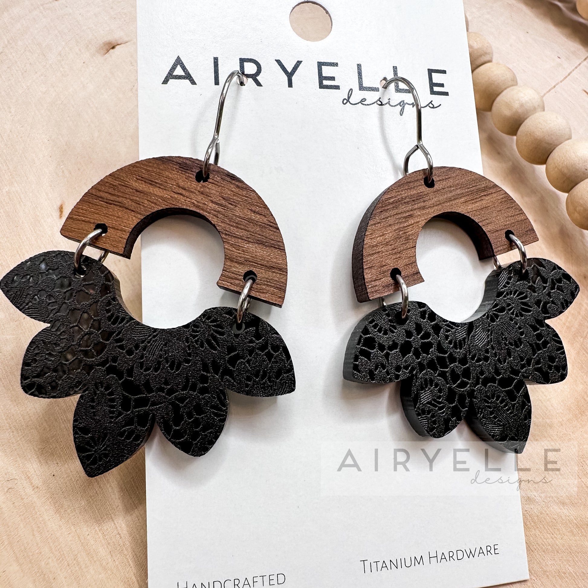 Black Lace Scallop Acrylic + Wood Arch Earrings