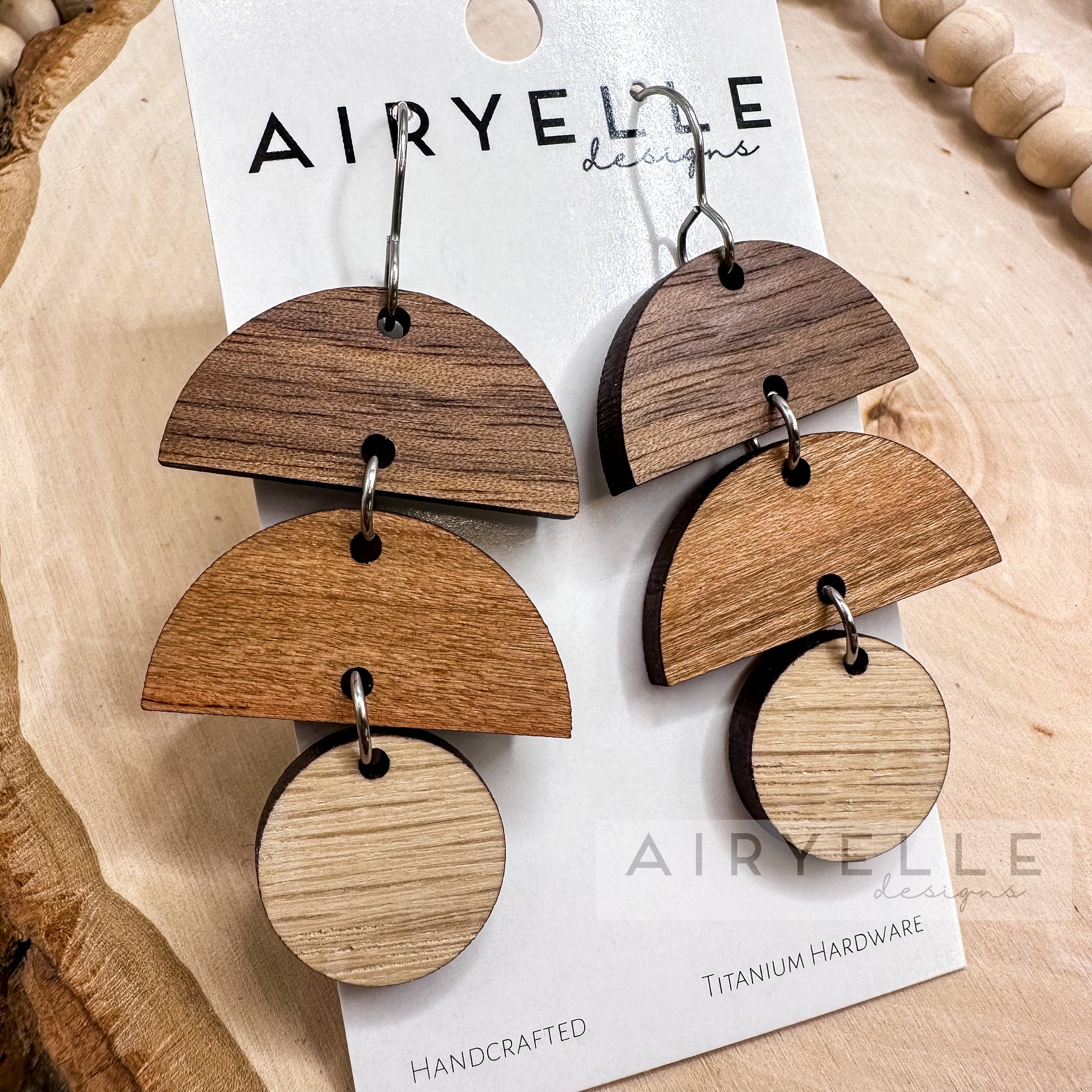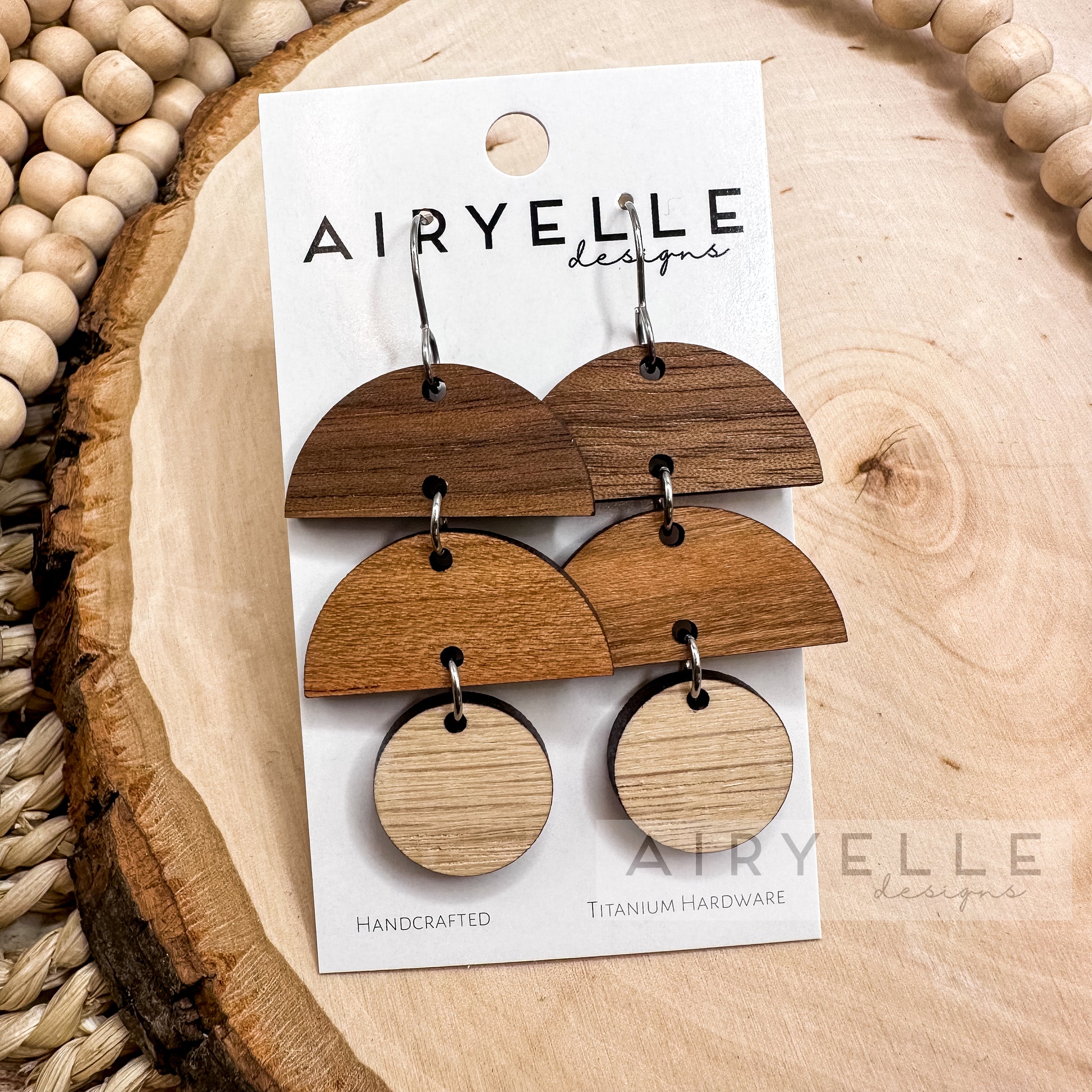 Materials: These beautiful, elegant earrings are made from finished walnut, cherry & maple wood.